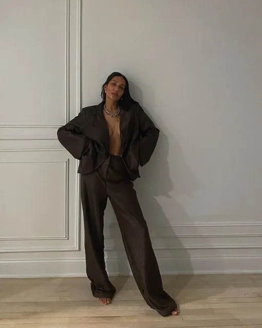 При выборе кроя и модели брючного костюма, в этом сезоне, конечно, стоит делать ставку на оверсайз, который, кажется, уже никогда не выйдет из моды. Пиджак с мужского плеча, который выглядит так, будто вам отдал его ваш бойфренд, когда вы замерзли сидеть на весенней веранде. И, конечно, огромные удлиненные и широкие «папины» брюки, которые волочатся по полу и протягиваются ремнем, чтобы не свалиться с ваших бедер.