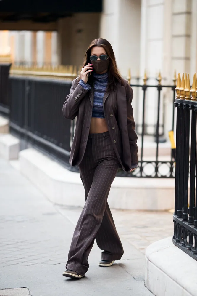 Фэшионист носят брючные костюмы с топами-бандо и обычными бланковыми футболками или с одним лишь бюстгальтером, который ненавязчиво выглядывает из-под жакета. В качестве обуви герои стритстайла выбирают все, что попадается под руку: это и удобные массивные кроссовки, и туфли на шпильке с зауженным носом, и казаки на небольшом каблуке, и удобные мюли, и даже тапочки Crocs, которые прибавляют образу дополнительного уюта.