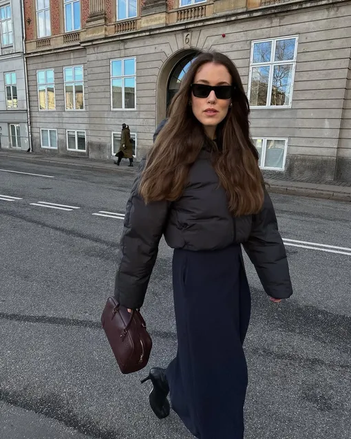 Эти оттенки уже не раз появлялись на подиумах осенью-зимой: дизайнеры использовали их буквально везде: от верхней одежды и свитеров до брюк платьев и обуви. И в следующем сезоне они не сдадут своих позиций. Но вместо того, чтобы составить коричневый тотал-лук, многие предпочитают выбирать один элемент. Например, сумку. Это тонкий, но эффектный способ придать зимним нарядам элегантность. Такой продуманный ход — глоток свежего воздуха для тех, кто хочет разнообразия в своем зимнем гардеробе, не выходя из зоны комфорта. Если с цветом мы определились, то давайте поговорим о формах. Сочетать пуховик с сумкой порой бывает не так просто. Причина кроется в том, что большинство опций не рассчитаны на объем, который неизбежно добавляет пуховик. Самый удобный вариант — это сумка кроссбоди. Она не доставит дискомфорт и позволит освободить руки. Но есть один минус: объем таких версий часто ограничен, и если вы предпочитаете носить с собой «всю свою жизнь», то она вам может не подойти.