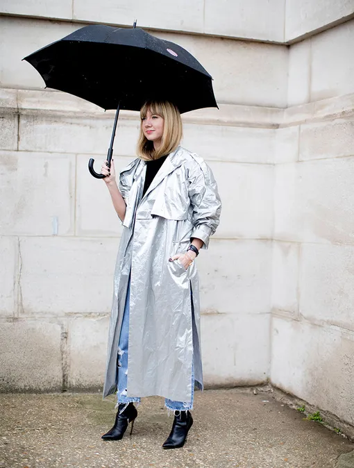 Раз весна пока не балует теплыми деньками и цветущими улицами, стоит сыграть по погодным правилам и добавить холодную серебристо-металлическую палитру в свой гардероб, например при помощи металлизированных пальто и тренчей, которые сейчас очень востребованы среди мировых модниц.