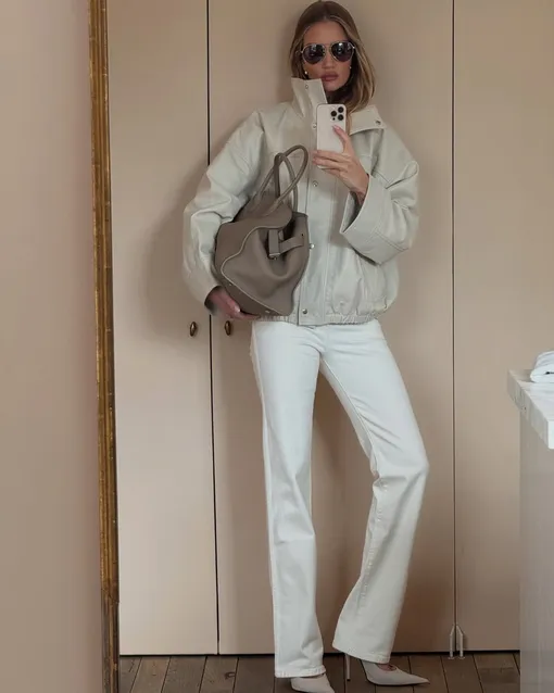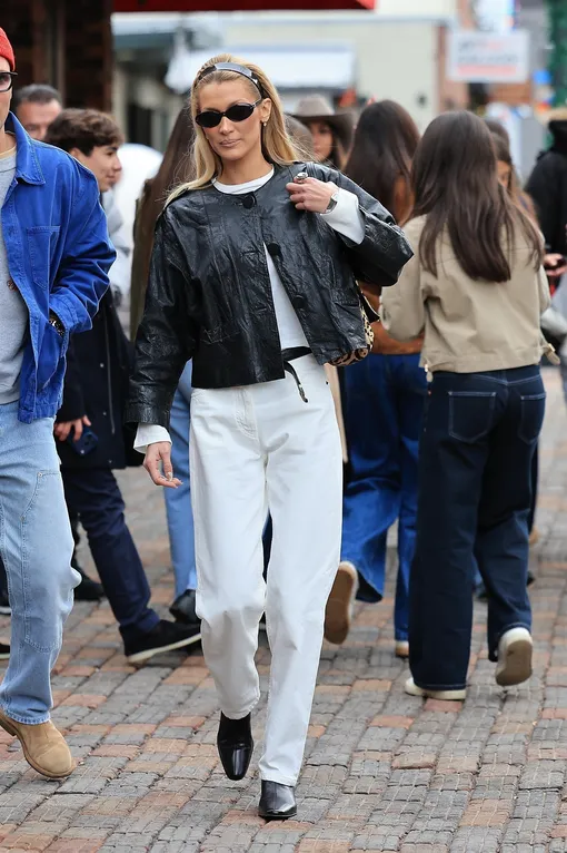 Как носить белые джинсы? Здесь нет особых правил, учитывая тот факт, что это одно из самых простых изделий для стилизации. Белла Хадид, например, дополняет их укороченной кожаной курткой, молочным лонгсливом и ретро-ободком в духе 80-х, чтобы получить расслабленный комплект на каждый день. Эта же формула может сработать с любым минималистичным «верхом» — например, с кашемировым кардиганом, уютным шерстяным свитером с молнией на воротнике, простой рубашкой со свободным кроем или же приталенным скульптурным жакетом. Ниже собрали лучшие вариации белых джинсов, которые точно пригодятся в весеннем гардеробе.