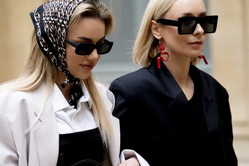 А героини стритстайла уверяют, что носить косынку стоит, как Аленушка в известной сказке, подвязывая под подбородком. К такому способу ношения платка мы уже успели привыкнуть: его носят не только фэшиониста, но все западные реперы, а некоторые даже посвящают русской косынке свою музыку — как ASAP Rocky, назвавший свой трек милым словом babushka, которое обозначает именно такой способ ношения косынки.