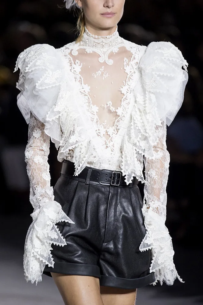 Агрессивно-сексуальная кожа и романтичные шелк и кружево в этом сезоне «поженил» Энтони Ваккарелло. Весенне-летний показ Saint Laurent задал моду на дерзкое сочетание, которое уже приобрело фанатов из числа знаменитостей. Лучше всех такой образ удался Роузи Хантингтон-Уайтли. Решившись на эксперимент, отдавайте предпочтение черно-белой гамме. Не забудьте добавить пару актуальных деталей в духе 80-х, например сапоги гармошкой или нескромные серьги со стразами.