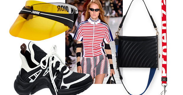 Начинаем подготовку к чемпионату мира по футболу. Яркие цвета, острые формы, фактурные детали, инновационные материалы – основные тезисы, которые нужно знать о модной тактике защиты и нападения. В качестве экипировки — удобные кроссовки, вместительные сумки, спортивные очки и стильный козырек Dior.