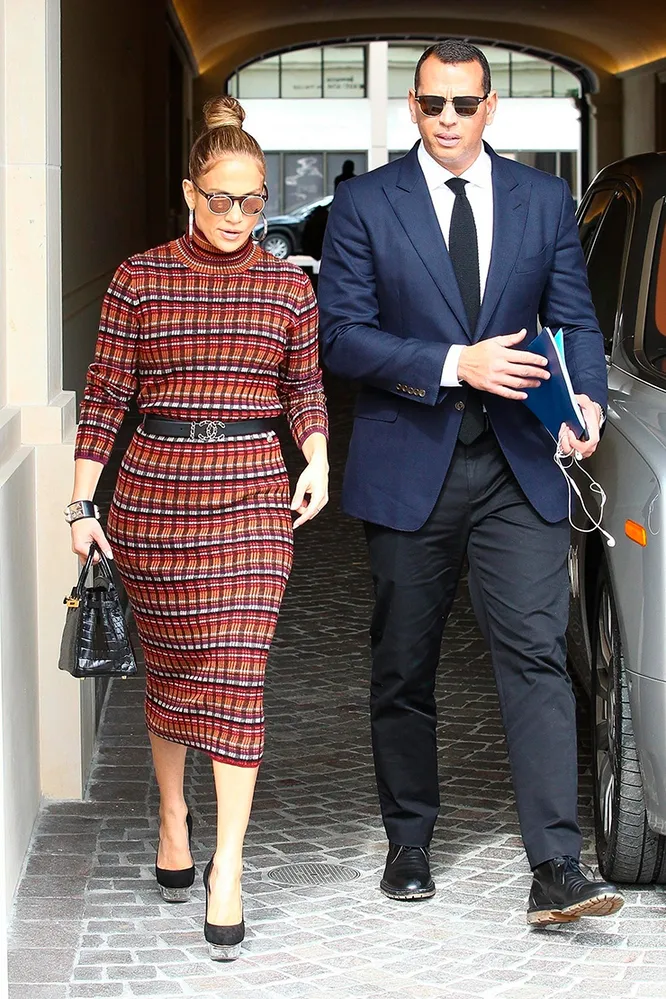 На днях красотка Дженнифер Лопес была замечена в Лос-Анджелесе в трикотажном полосатом платье Chanel, которое дополнила широким ремнем на талии. Лаконичный комплект выгодно подчеркнул фигуру певицы, при этом оставив практически все тело закрытым. Если вы, как и Джей Ло, все свое свободное время проводите в спортзале и хотите, чтобы окружающие это заметили, смело выбирайте одно из платьев в нашей подборке.