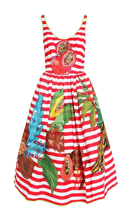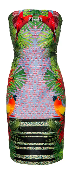 Пальмы, цветы, фрукты, тропические птицы — нет ничего красочнее такого пейзажа. И если вам пока не удалось оказаться среди этой красоты, заботливые дизайнеры придумали выход. Эти яркие платья не просто поднимут настроение, но и точно обеспечат внимание окружающих.
