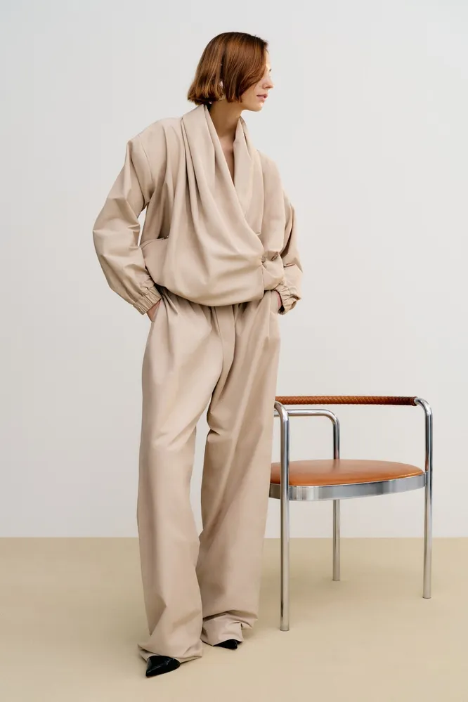 Бежевые брюки переживают очередной виток популярности. Хотя, по правде сказать, они никогда не выходили из моды. На подиуме их можно было увидеть в коллекциях самых разных версиях: от зауженных и прямых до широких. Но их главная черта — сдержанная выразительность. Бежевый «не кричит», он звучит мягко, оставляя место индивидуальности. Это цвет, в котором всегда есть глубина и утонченность. Он самодостаточный и идеально сочетается с другими тонами: будь то белый, коричневый, темно-синий, серый или даже красный или фиолетовый. В этом и заключается его сила: он становится своего рода холстом, на котором можно создавать любые сценарии. Главное преимущество бежевых брюк — адаптивность. Они способны меняться в зависимости от выбранных акцентов. С рубашкой и жакетом получится деловой дуэт, с трикотажем — уютная классика на каждый день, а с толстовкой из шерсти — тандем для расслабленных дней.