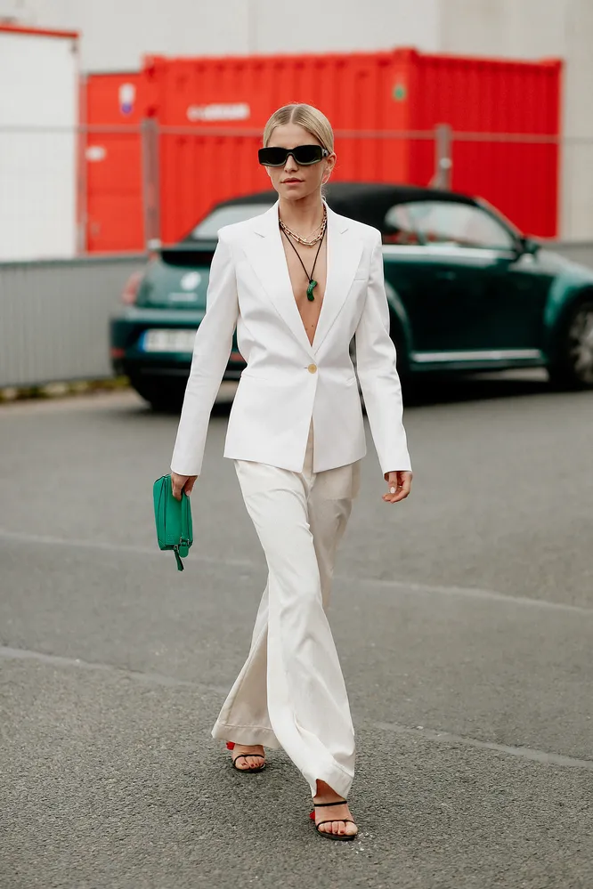 Главная база на лето — белый брючный костюм. Как он должен выглядеть