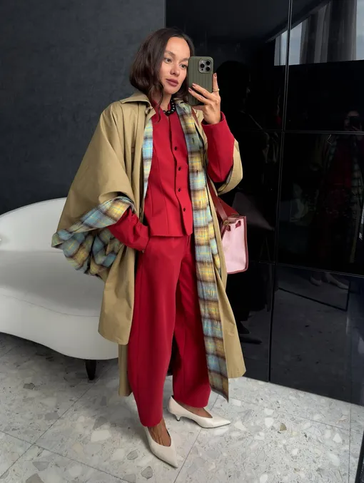 Почему именно красные и почему именно брюки? Несмотря на активный цветовой тренд, не каждый яркий оттенок легко адаптируется. Желтые или оранжевые варианты требуют сложной стилизации (и не каждому приходятся по душе), тогда как красный удивительно гибок, и идет всем. Он сохраняет выразительность, но при этом легко сочетается с базовой палитрой. Красный традиционно ассоциируется с уверенностью, энергией и внутренней силой — и эта эмоциональная составляющая заметно влияет на восприятие образа. Даже одна такая вещь способна задать нужный тон. Брюки остаются самой практичной частью гардероба, и сейчас актуальны самые разные формы: брюки-клеш, широкие, зауженные или баллоны. Отдельного внимания заслуживает заниженная посадка, которая возвращается как часть общего интереса к эстетике нулевых. Но самое универсальное решение — прямые пары на средней или завышенной талии. Материалы также разнообразны: костюмная шерсть, смесовые ткани, кожа (и ее альтернативы) или мягкий трикотаж.