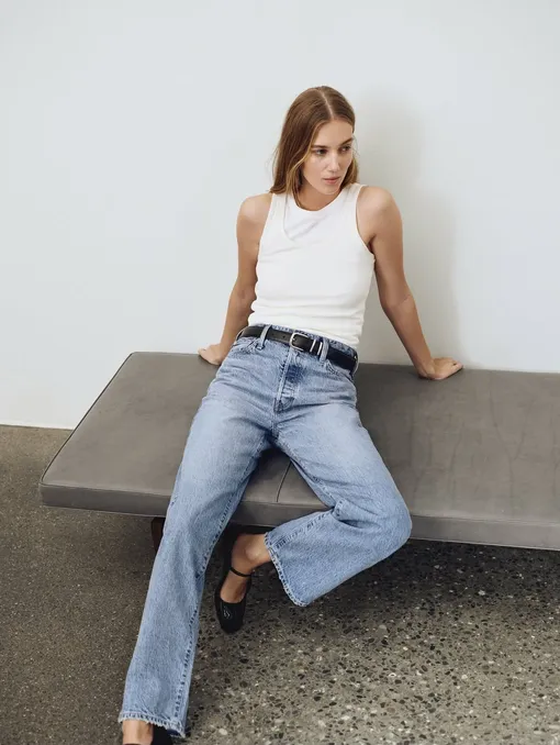 Второе — это посадка. Чтобы правильно смоделировать талию и подчеркнуть силуэт, стоит присмотреться к классике — а именно к модели, идеально сидящей на бедрах. В этом случае верх может быть любым — от хлопковых белых рубашек в свободном крое, до лонгсливов с добавлением шерсти и оверсайз-свитеров. Также не стоит забывать и про завышенную талию — она была популярна в 2016 и сейчас благодаря всеобщей ностальгии вернулась за реваншем.