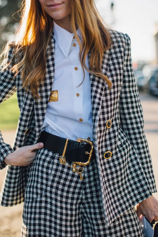 Все мы знаем узор «гусиная лапка». Черно-белая ломаная клетка — модная константа, которую дизайнеры используют от сезона к сезону. Исторически это традиционный шотландский узор, который вошел в моду в 1930-х благодаря принцу Уэльскому — будущему королю Георгу VIII. Он нередко носил пиджаки с этим узором и по неформальным поводам, и на официальные мероприятия. В женский гардероб «гусиная лапка» перебралась чуть позже, стараниями Габриэль Шанель. Великая мадемуазель позаимствовала ее у мужчин так же, как и твид — и стала носить сама.