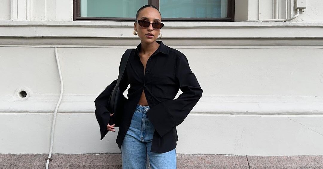 В этом сезоне модные инфлюенсеры доказывают, что нет ничего более эффектного, чем базовые предметы гардероба. Но главное — уметь использовать некоторые стилистические уловки. Просматривая социальные сети, мы заметили, что этой весной героини стритстайла сделали ставку на голубой деним и черные топы. Это сочетание легко может стать новой униформой. Безусловно, это может показаться не самой захватывающей комбинацией, но она проверенная и вневременная. Это особенно актуально в эпоху осознанного потребления, когда мы все стремимся внимательнее подходить к шопингу. Что выбрать в качестве низа? Конечно, ваши любимые голубые джинсы. Самый универсальный вариант — прямые модели на средней или высокой посадке. Но вы можете также использовать любые голубые пары, которые хорошо на вас сидят. Например, клеш, мешковатые, bootcut или карго. Последние, кстати, все еще в тренде в этом сезоне. А вот верх может быть любым. Рубашка, блуза, футболка, майка-алкоголичка или нарядный топ — ориентируйтесь на личные предпочтения и повод.