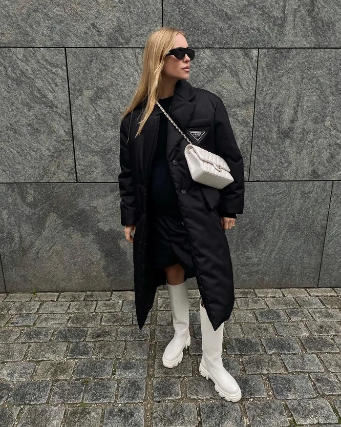 К тому же с древнейших времен черный наделяют массой потайных смыслов — что делает его едва ли не самым загадочным и таинственным цветом из всех существующих. Цвет силы, цвет печали, цвет тайны, цвет поэзии — как только его не называли. Некоторые дизайнеры из-за всего этого магического флера так полюбили черный, что вообще стали использовать практически только его — скажем, Йоджи Ямамото или Рик Оуэнс. А про маленькое черное платье Габриэль Шанель вообще молчим — оно уже давно превратилось в самостоятельную легенду такой же величины, как и сам Дом Chanel. Впрочем, у всей этой романтики есть и обратная сторона. Многим черный кажется скучным и избитым. Дескать — это самый простой цвет, который не требует никакой фантазии в сочетаниях. Еще и мрачный. Если вы думаете так же, то мы рискнем с вами поспорить. Нужно просто уметь его правильно носить. Этот уникальный оттенок на самом деле дает нам огромное поле для экспериментов с кроем, фактурой и силуэтом. Он выступает как своего рода чистый холст, на котором более наглядно заметны ваши смелые визуальные решения. Вы никогда не будете выглядеть скучно в черном, если вдоволь экспериментируете с формой и пропорциями. Оверсайз, рукава-буфы, массивные гипертрофированные плечи, перетянутая ремнем талия, пышные юбки — вот лишь небольшой перечень того, что поможет вам оживить ваш total black. К слову, одеваться в этот цвет с ног до головы вовсе не обязательно. Более того, черная одежда (особенно верхняя) будет очень интересно и гармонично смотреться как раз-таки со светлыми аксессуарами и обувью — особенно с белыми. В общем, вариантов разнообразить образ с использованием этого самого загадочного (и универсального) оттенка — масса. А чтобы вы в них не потерялись, мы прилагаем «шпаргалку» с образами самых стильных девушек мира, которые лучше всех знают, как не выглядеть уныло и скучно.