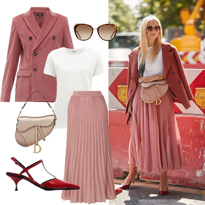 Блейзер WEEKEND MAX MARA, 27 122 руб.; футболка MONCLER, 10 877 руб.; юбка MISSONI, 42 325 руб.; сумка Dior, цена по запросу; туфли PRADA, 46 000 руб.; очки CARTIER EYEWEAR, 42 364 руб.