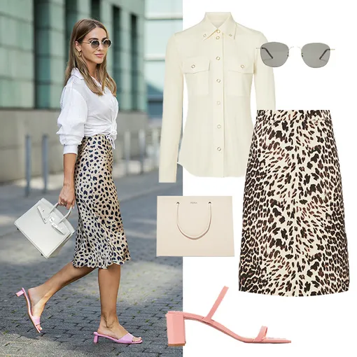 Блузка BURBERRY, [http://www.farfetch.com/ru/shopping/women/burberry--item-14110456.aspx?storeid=11115] 41 500 руб.; юбка PRADA [http://www.matchesfashion.com/intl/products/Prada-Leopard-print-wool-twill-skirt-1298585], 88 103 руб.; очки SAINT LAURENT [http://www.matchesfashion.com/intl/products/Saint-Laurent-Round-metal-sunglasses-1308247], 17 620 руб.; сумка MEDEA [https://www.net-a-porter.com/ru/en/product/1185236/medea/prima-hanna-small-leather-tote], 29 813 руб.; мюли BY FAR [https://www.net-a-porter.com/ru/en/product/1156107/by_far/tanya-leather-mules], 20 666 руб.