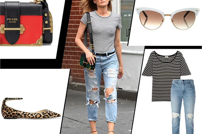 1. Футболка, Saint Laurent. 2. Джинсы, T by Alexander Wang [https://www.farfetch.com/shopping/women/t-by-alexander-wang-distressed-jeans--item-11369636.aspx?storeid=9475&from=search&ffref=lp_pic_251_8_]. 3. Очки, Gucci [https://matchesfashion.com/password]. 4. Сумка, Prada [http://www.mytheresa.com/us_en/cahier-embellished-leather-shoulder-bag-626804.html?utm_source=affiliate&utm_medium=affiliate.cj.us]. 5. Ремень, Saint Laurent. 6. Балетки, Jimmy Choo.