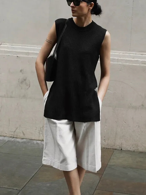 Каждое лето перед нами встает один и тот же вопрос: как выглядеть стильно и уместно в городе, но при этом не страдать от жары? Особенно остро он звучит для тех, чья реальность — это пять дней в неделю с 9 до 6 в офисе с дресс-кодом, пусть и не таким строгим. Все-таки в джинсах уже невозможно ходить, а сарафан или льняные брюки не всегда смотрятся уместно. Ответ модной индустрии — костюм с шортами. А именно — шортами-бермудами.