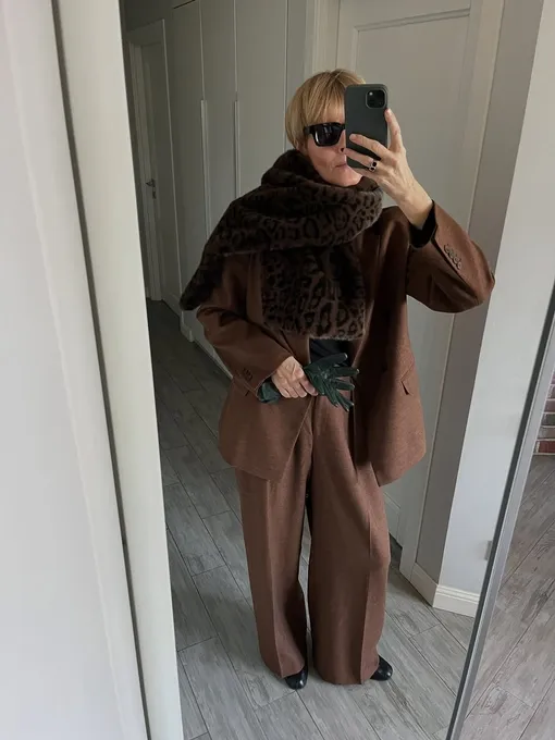 Шарф из меха — один из самых элегантных и выразительных аксессуаров сезона. Он может быть внушительным, ближе к палантину, или аккуратным, похожим на изящный воротник. Выполненный в естественных оттенках или в дерзких цветах. Современные версии создаются из переработанных волокон и мягкого эко-меха, которые визуально не уступают натуральным, но гораздо легче и комфортнее в носке. И, конечно, бюджетнее. Главная особенность мехового шарфа — универсальность. Он мгновенно делает образ «дорогим», при этом не требуя ничего лишнего. Достаточно набросить его поверх лаконичного пальто, структурированного жакета или даже тренча, чтобы добавить нужный объем в плечах — тренд, который уверенно держится уже несколько сезонов.