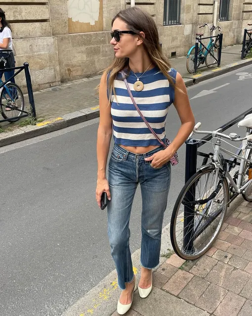 Если вы находитесь в процессе выбора укороченных буткатов, то возьмите за референс образы современных французских модниц. Они точно знают какие джинсы приобрести, чтобы внедрить истинно парижский дух в ваш гардероб. Если с длинной мы уже разобрались, самое время подумать о посадке — она может быть высокой, средней или заниженной. В этот раз мы не будем советовать гнаться за трендом на низкую талию, поэтому рекомендуем инвестировать в классику — простые базовые модели без перегибов в какую-либо из сторон.