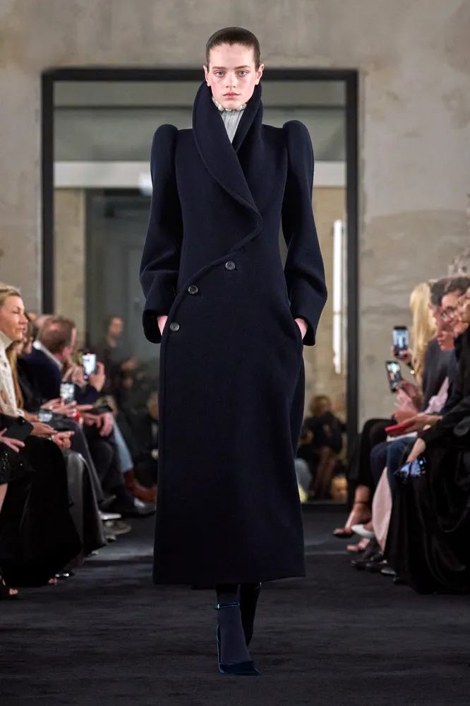 Историю создания воротника-стойки отследить сложно, и его нельзя приписать какому-то одному дизайнеру. Этот элемент появлялся в самых разных эпохах и контекстах: от рубашек и военной формы до верхней одежды. Сегодня же он вернулся в моду как символ практичной элегантности. Пальто с воротником-стойкой вошли в число главных трендов: и чем выше ворот, тем лучше. Такой компонент завершает образ — делает его собранным и продуманным. К тому же это не только про эстетику: высокий воротник дарит комфорт и тепло, заменяя шарф. Что касается самого фасона, то тут нет никаких ограничений. Вневременное пальто длины макси, приталенная модель в духе lady like, двубортное, лаконичное однобортное или оверсайз — каждая из этих моделей выглядит актуально, а воротник станет акцентом. Более того, его можно варьировать под настроение: носить поднятым, создавая графичный силуэт, или опустить, формируя мягкий отложной вариант. Тем, кто ищет менее классическое решение, стоит обратить внимание на пальто-кейп. Такое разнообразие выбора делает пальто с высоким воротом универсальной инвестицией — оно легко адаптируется под любой стиль.