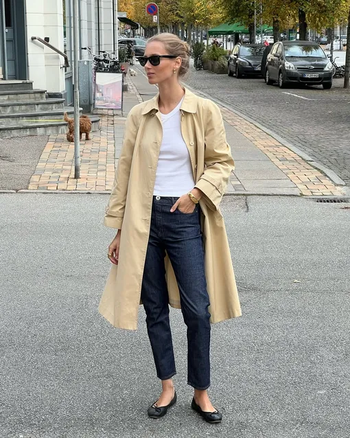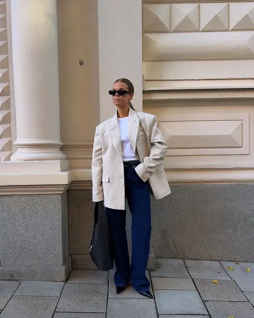 Казалось бы, белая футболка и синие джинсы — это настолько базовая комбинация, что удивить ей сложно. Но именно в этой простоте и скрыт ее потенциал: все зависит от нюансов — кроя, длины, посадки и стилистических акцентов. «Прямые джинсы + свободная футболка» — классика, на которой строится современный кэжуал. Прямые джинсы средней или высокой посадки — незаменимая база для городского гардероба. В тандеме с оверсайз-футболкой, слегка заправленной в пояс, такой образ приобретает расслабленный и комфортный вид. Добавьте лоферы, мюли или кроссовки в ретро-стиле, возьмите кожаную сумку — и у вас готов ансамбль на каждый день, который никого не подведет. Хотите более актуальный лук? Тогда замените «низ» на самые модные джинсы в мире прямо сейчас — буткаты. Этот хит сезона, который идеально подчеркивает пропорции и визуально вытягивает силуэт. Особенно в паре с приталенным «верхом», сидящем по фигуре.