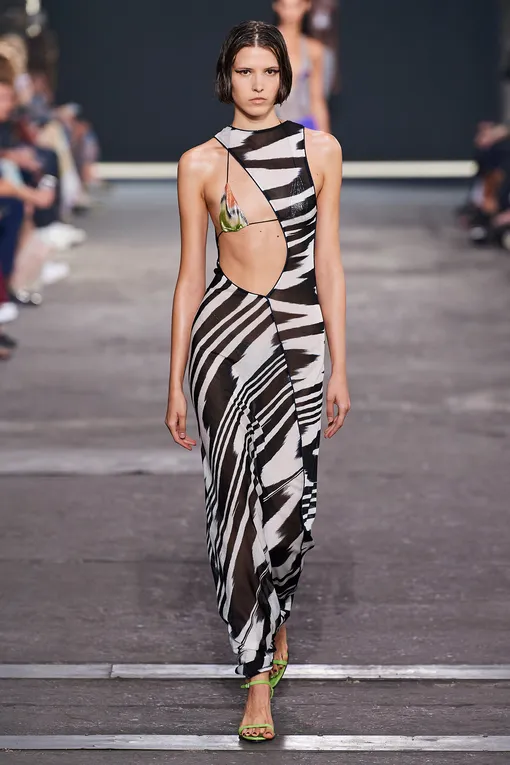 Свои версии этого приема представили на суд публики очень многие дизайнеры. Платья с анималистичными принтами появились в коллекциях Blumarine, Salvatore Ferragamo и, конечно же, Roberto Cavalli (для этого итальянского бренда «хищная» тематика вообще всегда была знаковой и любимой). В большинстве случаев предпочтение отдавалось классическому леопарду и тигровой полоске. Тренд неожиданно проник даже в кутюр: в капсуле, созданной Гленном Мартенсом для Jean Paul Gaultier, появилось платье-колонна с корсетом в «зебровой» расцветке. Поможет поддержать тренд и принт «под змею» или «под рептилию». Ну а мы собрали в своей подборке самые красивые из доступных вариантов, которые можно купить прямо сейчас, несмотря на санкции и уход брендов из России.