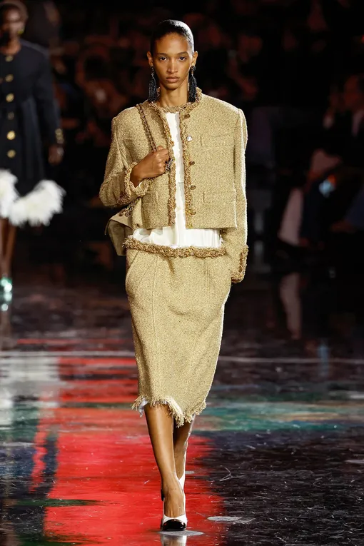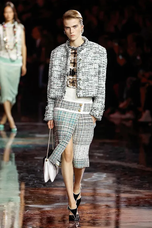 Костюмы с юбками — новый старый тренд. Конечно, они никуда не уходили даже несмотря на то, что в последние сезоны в эстетике офискора царил маскулинный стиль с широкими брюками и массивными плечами. Женственные сеты в духе Chanel всегда были где-то здесь, однако они не могли похвастаться такой всеобьемлющей трендовостью. Многие модницы заменяли узкие юбки-карандаши на свободные брюки или даже джинсы, составляя контрастные комплекты. Теперь этого делать не надо — ведь монохромные костюмные пары вернули себе былое превосходство. Многие дизайнеры вспомнили о том, что проповедовала сама Габриэль — а именно свободную одежду вне рамок, которая при этом остается строгой и модной без перегибов. Одним из первых на этом поприще стал новый креативный директор Chanel Матье Блази, который придал аскетичному комплекту новый вид. Он лишил его «нафталинового» звучания благодаря актуальному крою и разрезах на юбке, которые не только «осовременивают» ее внешний вид, но и делают более удобной в носке.