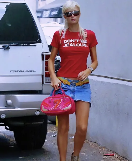 В начале нулевых такие топы работали как одна из форм ироничного самовыражения. Пэрис Хилтон, Бритни Спирс, Линдси Лохан и другие так транслировали свое настроение: короткие фразы, ироничные лозунги, личные послания. У главной светской львицы нулевых Пэрис Хилтон было безмолвное дерзкое «не завидуйте», а Лиза Ринн практически делала политическое высказывание своим «Мадонну в президенты». Что происходит сейчас? Тренд не просто вернулся: и он стал разнообразнее по назначению. Зендея недавно вышла в образе с кружевной юбкой, красными лоферами и футболкой с надписью «Быть любимым — значит быть узнанным». Это уже не шутка и не провокация, а философское высказывание, отсылающее к ее новому фильму «Вот это драма!». Дженнифер Лоуренс и Алекса Чанг выбирают более простые версии и вписывают их в повседневные образы. И это не центральный акцент, а легкое игривое настроение.