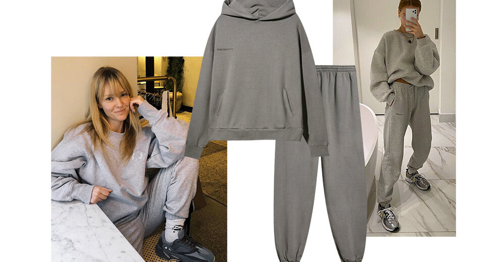 Классическое серое комбо — выбор всех заядлых модниц, которые носят его не только дома, но и на фэшн-показы. Так что не стоит ограничиваться идеей карантина — костюм пригодится и в светлые времена.