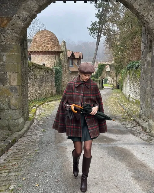 Если вы выбираете свой первый кейп, лучше всего обратить внимание на шерсть или кашемир. Более смелое решение — твид или букле. Также можно рассмотреть альтернативы из кожи или водонепроницаемых тканей. Как его носить? Главное правило — кейп всегда центр образа, поэтому остальные элементы лучше выдержать в лаконичной стилистике. В офис его можно надеть с костюмом, прямыми брюками и блузой, а также юбками и платьями разной длины, дополнив образ высокими сапогами. Для повседневных выходов подойдут джинсы и тонкий трикотаж. Если же вы собираетесь на светское мероприятие, выбирайте длинный кейп в комбинации с массивными украшениями и туфлями-лодочками. А чтобы не замерзнуть, обязательно добавьте колготки. Например, ультрамодные полупрозрачные. Кейп — это инвестиция, которая останется с вами на долгие годы. Он не только отражает главные тренды осени-2025, но и способен превратить любой выход в модное заявление.