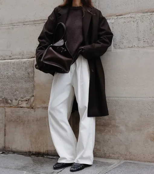 В категории джинсов каждый теплый сезон у нас есть бессменный фаворит. И это модели из белого денима. Во-первых, светлые тона отлично сочетаются с любыми оттенками. А во-вторых, это все еще джинсы — самый удобный и расслабленный вариант для повседневных образов, который никогда не надоест. Если вы хотите примерить белые джинсы ровно в тот момент, как сойдет снег, то обеспокоиться о приобретении идеального изделия стоит прямо сейчас. Первое и самое важное — это фасон. Он должен подходить вашей фигуре и подчеркивать ее достоинства. Ели вы хотите инвестировать в классику, то отличным вложением станут прямые, широкие, mom fit или джинсы-сигареты. А привнести в комплект нотку ретро помогут популярные сейчас модели клеш или виральные укороченные буткаты. Еще один пункт, мимо которого невозможно пройти — посадка. Чтобы оседлать волну трендов, непременно выбирайте модели на заниженной талии, а если хочется купить джинсы, которые никогда не выйдут из моды, то классическая посадка отлично для этого подойдет. Дополнительный градус к трендовости изделия могут добавить искусственные потертости. Сегодня, когда в почете вещи с историей, винтажные детали на материале становятся тем самым определяющим моментом, благодаря которому не требуется дополнительная стилизация. Больше о модных белых джинсах на весну-2026, мы рассказали ниже.