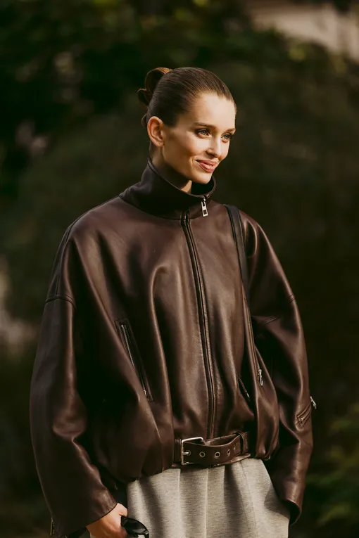 В 2026 году мода взяла курс на индивидуальность и максимализм, и это переосмысление коснулось даже таких вневременных позиций, как кожаная куртка. Модели стали выразительнее, силуэты — сложнее, а детали вышли на первый план. Среди множества интерпретаций именно версия с высоким воротником сегодня выглядит самой актуальной. Ультравысокие варианты стали заметным мотивом: их можно увидеть на кожаных куртках с подчеркнутой линией плеч, моделях с рукавами-буфами, куртках-кейпах и даже на кожаных парках. Такой воротник работает сразу в двух направлениях. Он делает образ визуально сложнее и одновременно защищает от ветра и холода лучше шарфа. Идеально для межсезонья. Благодаря этому кожаная куртка с высоким воротником превращается в ключевую покупку. Выбор фасона оставляем за вами. Куртка с легким эффектом оверсайз остается самой универсальной: под нее легко надеть объемный свитер или худи с капюшоном. Если вам ближе классический гардероб, стоит присмотреться к укороченным моделям до линии талии с прямым силуэтом. Они выглядят более изящно и легко вписываются как в повседневные, так и в вечерние комплекты. Среди актуальных вариантов также выделяются ретро-куртки с выразительными рукавами и лаконичные кожаные бомберы. А больше о том, как выбрать и где купить модную кожаную куртку с высоким воротником на весну-2026, мы рассказали ниже.