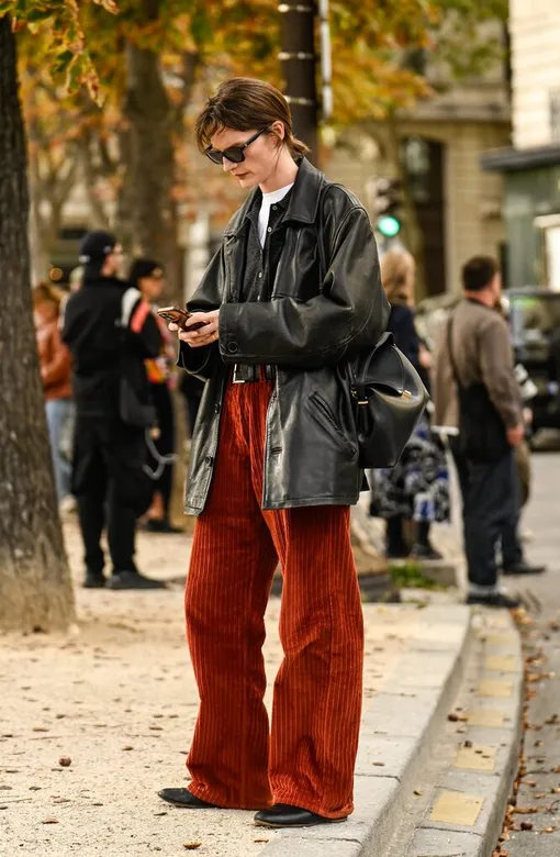 Межсезонье всегда звучит противоречиво. С одной стороны, уже хочется легкости, цвета и ощущений весны. С другой — погода диктует нам спокойную гамму и плотные фактуры. В такие периоды особенно интересно играть с текстурами: именно они меняют настроение образа без радикальных перемен. Замша, при всей нашей любви, пока уступает место более практичным материалам: на первый план выходит кожа, деним и вельвет. Вам точно может пригодиться юбка из лаковой кожи, а также уже прямо сейчас вы можете стилизовать джинсовую куртку. Еще одна классная вещь — брюки из вельвета. И это достойная альтернатива привычным джинсам или брюкам из шерсти. Цикличность моды вновь поднимает интерес к вельвету — ткани, которая была крайне востребована в 1970-е. Последний сезон только закрепил ее позиции: сначала через волну бохо-настроения, теперь — через стремление к индивидуальности и поиску персонального стиля. Но вельвет остается материалом с характером, поэтому многие относятся к нему с осторожностью. Рельефная текстура довольна броская, а стоимость вещей иногда выходит за рамки приемлемой стоимости за один предмет капсулы. Тем не менее вельвет хорошо держит форму, идеально переносит каждодневную носку и долго сохраняет первозданный вид. Если разделить стоимость на количество выходов, покупка перестает казаться чересчур дорогой. Особенно выигрышно в гардеробе работают брюки — универсальная база с выразительной фактурой. Больше о том, как выбрать и с чем носить модные вельветовые брюки весной-2026, мы рассказали ниже.