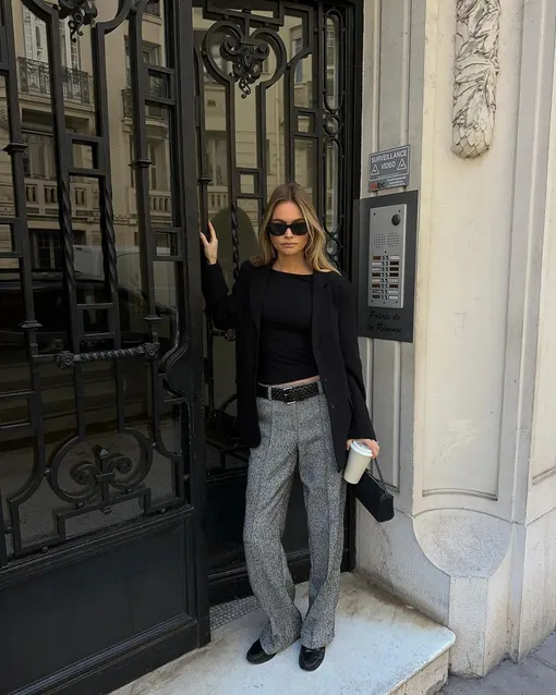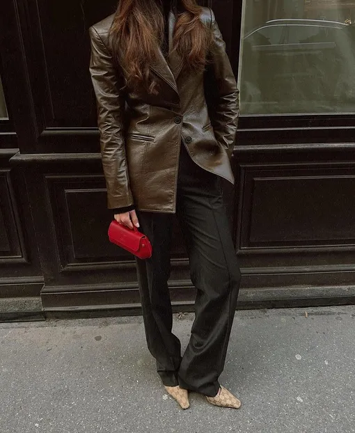 Как их стилизовать? Не волнуйтесь, они прекрасно сочетаются практически с любыми вещами. Можно носить их с базовым лонгсливом (рекомендуем заправить его и добавить ремень), с джемпером, белой рубашкой, романтичной блузой или нарядным топом. Особенно выразительно они выглядят в комбинации с ярким верхом. Но безусловно выигрышным вариантом будет сочетание с жакетом. При этом блейзер вовсе не обязательно должен быть из того же комплекта, что и брюки. Главное, чтобы образ смотрелся гармонично. Что касается обуви, здесь также широкий выбор: можно подобрать как базовые, так и более нарядные варианты. А ниже вас ждет 7 классных шерстяных брюк разного кроя и оттенка — выбирайте свою пару.