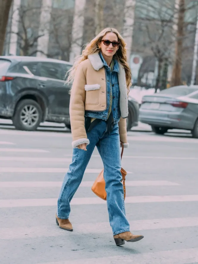 Да, речь именно о джинсовой куртке. И лучший союзник для нее — джинсы. Тотал-деним возвращается в модную повестку, напоминая о легендарном «канадском смокинге». История этого сочетания уходит в 1951 год, когда Бинг Кросби попытался заселиться в отель в Ванкувере в обычной куртке из денима и джинсах. Строгий дресс-код сыграл против него, и ситуация стала поводом для ироничного жеста от Levi's — бренд подарил певцу джинсовый смокинг. Забавная история превратилась в модный сюжет, а этот дуэт навсегда стал эффектной классикой. Весной-2026 этот прием снова звучит свежо. Куртка? Прямая, укороченная или до линии талии. «Низ»? На ваш вкус. Сейчас в тренде скинни, джинсы-клеш, буткаты или привычные широкие модели. А вот самая актуальная посадка — заниженная. Вы можете сочетать оттенки тон в тон или играть на контрасте: светлый деним с темным, черный с белым, голубой с красным. Чтобы адаптировать образ к межсезонью, добавьте верхнюю одежду — укороченную дубленку, бомбер, кожаную куртку или пальто. А когда станет теплее, замените куртку на пиджак из шерсти. Такой подход делает комплект многослойным и визуально сложным. С обувью можно действовать свободно: подойдут казаки, ботильоны, грубые ботинки на шнуровке или лаконичные лоферы. Под джинсовую куртку легко впишутся футболка, рубашка, майка или водолазка — ориентируйтесь на настроение и температуру за окном. Деним в этом случае работает как универсальная база, вокруг которой вы собираете ансамбль.