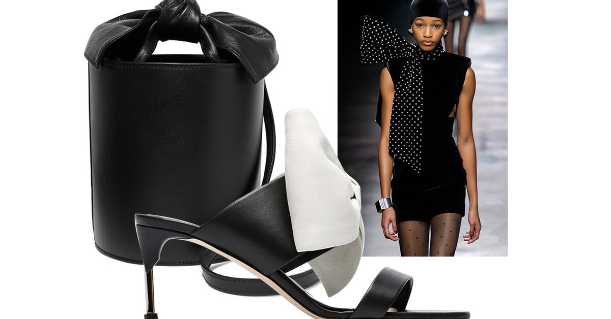 И снова все под завязку: банты самых разных конфигураций – от классических пышных в духе Кристиана Диора до плоских, напоминающих об искусстве оригами, – украшают сумки, графичные мюли и пояса.