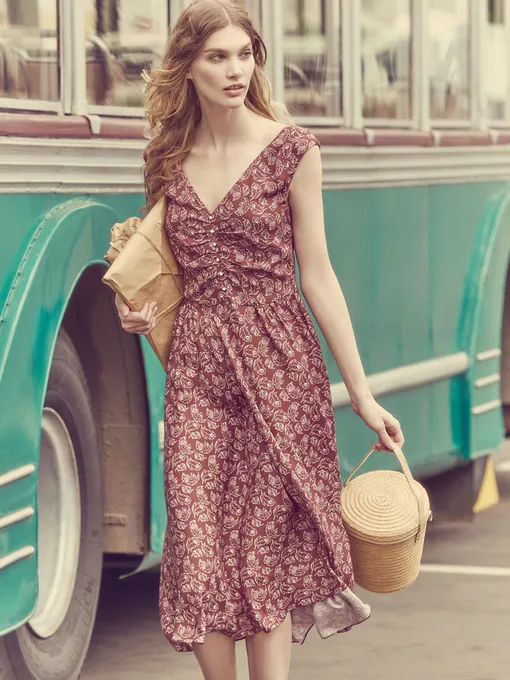 Если вам кажется, что дебютный лукбук нового российского проекта Matreshkiny похож на винтажную съемку или кадры из сентиментального советского кино, то вам не кажется. Чтобы максимально достоверно передать ретростилистику коллекции, съемку решили провести в старом автобусном парке, реквизит собрать на блошиных рынках, а героиню лукбука представить в образе романтичной студентки - беспечно-наивной и немного сентиментальной. Но главное в кадре - дебютная летняя капсула, навеянная советской эстетикой, но адаптированная для сегодняшнего дня и собранная из легких сарафанов и платьев, воздушных топов и брюк на высокой талии из итальянского шелкового батиста и мягкой вискозы. Все от и до покрыто принтами из жостовских узоров, перьев жар-птицы и нежных одуванчиков, точно на маминых студенческих снимках. Всего в дебютной коллекции марки не более 15 моделей, до 10 экземпляров на каждую. Как и у любимого создателями марки винтажа, у каждой вещи есть своя история — кое-что из детских воспоминаний, например о мамином зеленом сарафане, который она шила сама, кое-что из любимых фильмов, а еще сказок и книг.