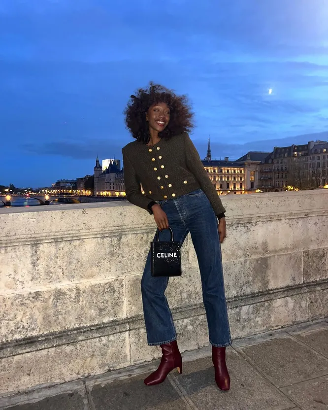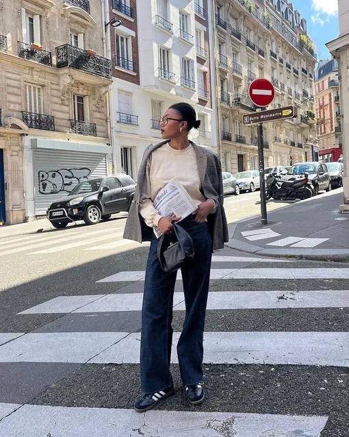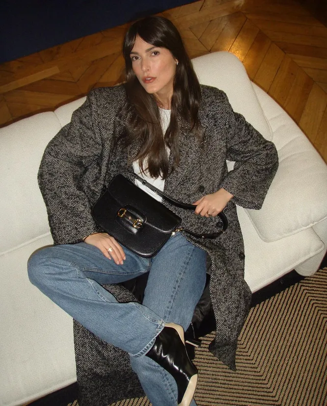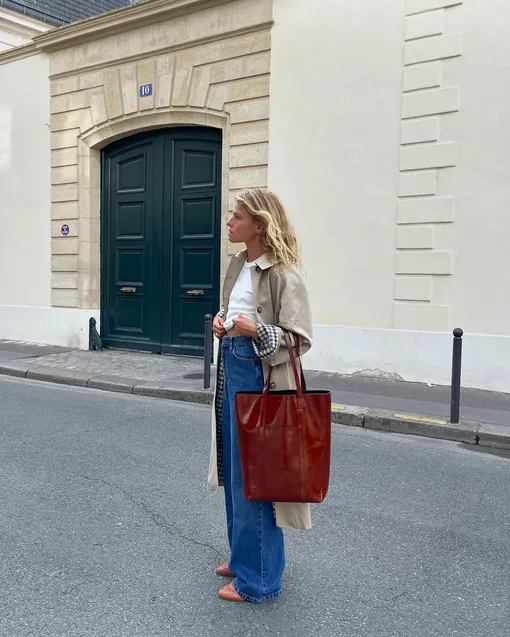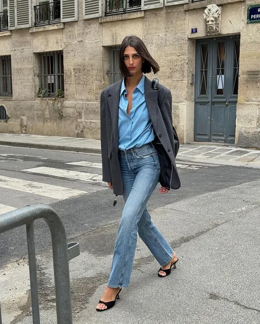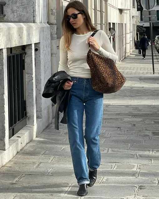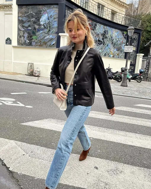 Глобально эту модель француженки вписывают в любой лук: как повседневный, так и нарядный. Например, можно надеть базовый лонгслив, футболку, топ, джемпер или рубашку. А сверху накиньте жакет или тренч. А когда станет холоднее, замените их на кожные куртки или пальто. Для вечернего аутфита комбинируйте такие джинсы с прозрачной блузой или кружевным топом. Формулы самые известные и простые, но дьявол здесь кроется в деталях. Так, выбирайте вневременные фасоны, спокойные оттенки и качественные материалы. Если говорить об обуви, то парижанки носят их с классическими кроссовками, балетками, босоножками, туфлями и, конечно, ботильонами. В общем, абсолютно с любой парой. Другими словами, это самый неприхотливый силуэт в мире джинсов, который только можно найти. Как француженки делают такие образы стильными? Добавляют правильные трендовые аксессуары. Это может быть стильная сумка (с леопардовым принтом или в оттенке бургунди) или акцентная обувь (яркие ботинки или серебристые балетки). Сочетайте разные текстуры, добавляйте акценты и ваши образы с прямыми джинсами заиграют новыми красками.