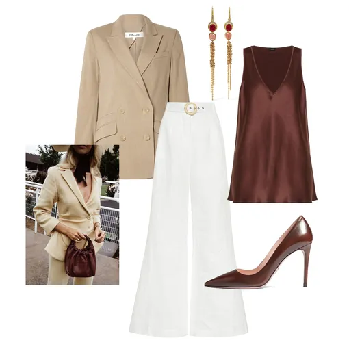 Стилисты и модницы активно пропагандируют идею капсульного гардероба — и мы полностью с ними в этом солидарны. Ведь что может быть лучше, чем набор многофункциональных нарядов, подходящих для самых разных ситуаций и погодных условий! Одна из таких вещей, безусловно, льняные брюки. Нюдового оттенка, в меру широкие, с высокой талией, они способны составить базу как для вечернего лука, так и для строгого делового образа. А главное — в них будет очень комфортно, ведь лен — один из самых экологичных материалов, который максимально приятен к коже и, как следствие, всегда спасает в жару.