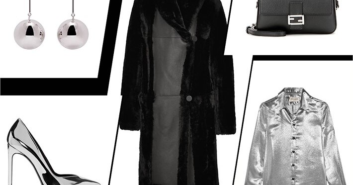 1. Сумка, Saint Laurent. 2. Серьги, Dolce & Gabbana. 3. Боди, Maria Lucia Hohan. 4. Пальто, Haider Ackermann. 5. Ботильоны, Gianvito Rossi. 6. Юбка, Proenza Schouler.