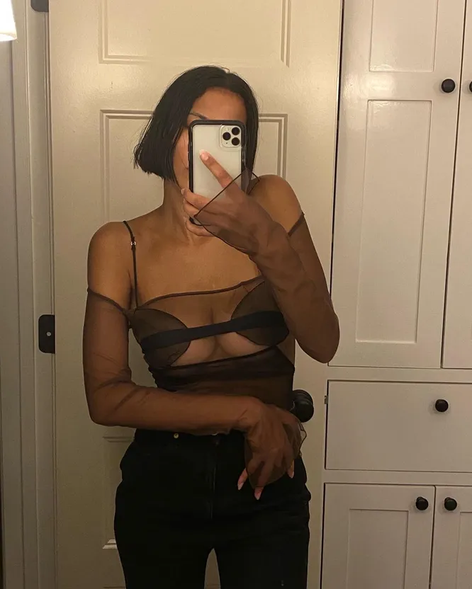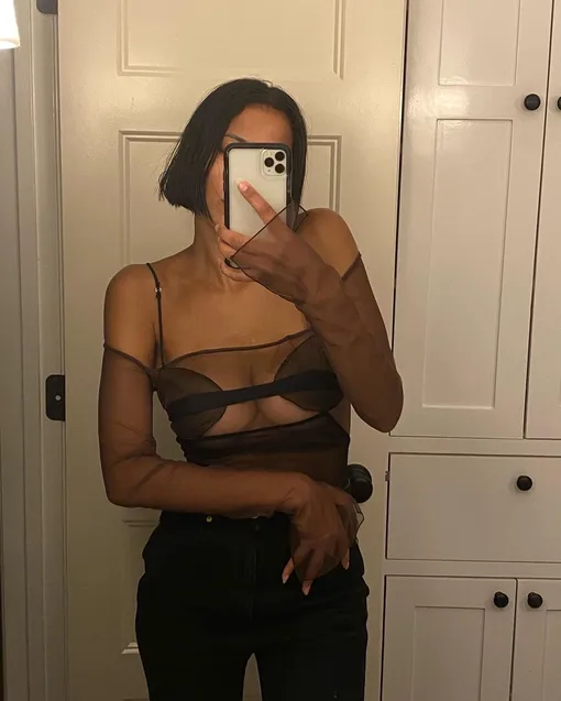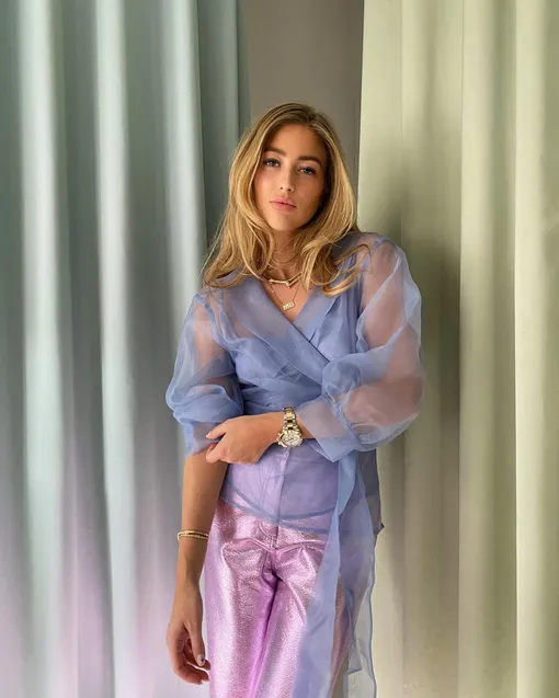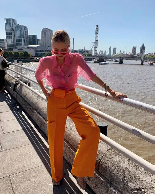 Чтобы начать, наконец, со спокойной душой носить прозрачные вещи, важно найти компромисс — и способы делать это так, чтобы выглядеть соблазнительно и стильно, а не вульгарно. Самый простой способ — надеть под прозрачную блузку или платье бежевый чехол, боди или лонгслив из тонкой облегающей ткани. Он сможет благополучно «мимикрировать» под кожу — но поможет вам не показать ничего лишнего. Впрочем, иногда вовсе не обязательно фанатично подбирать этот нижний слой под цвет кожи — и выбрать, напротив, нечто контрастное и нарочито заметное. В отдельных случаях это может дать интересный многослойный эффект — но такое практиковать лучше крайне осторожно. Например, как на весенне-летнем показе Fendi, где под прозрачным голубым платьем виднелось ярко-оранжевое боди с длинным рукавом.