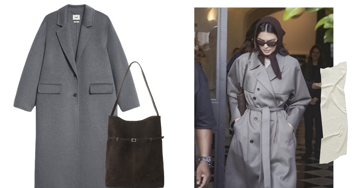 Как повторить такой актуальный и простой образ? Во-первых, найдите правильное серое пальто — оно может быть прямым, приталенным или в виде стильной вариации «халата», как у Дженнер. Обязательное условие — достаточная длина, которая практически полностью закрывает ноги. На роль первого слоя можно взять белый лонгслив, легкую футболку или теплый свитер, в зависимости от погоды, а в качестве идеального «низа» подобрать однотонную юбку, которая будет слегка выглядывать из-под пальто и создавать стильный эффект многослойности. На ноги рекомендуем надеть классические черные лоферы и стилизовать их с высокими носками, чтобы повторить акцентный прием с недели Моды в Копенгагене. Дальше работа по стилизации за аксессуарами — простая и вместительная коричневая сумка, минималистичные очки и однотонный платок справятся с ней лучше всего. Они могут быть выполнены в любых нейтральных тонах — от бежевого до темно-синего — в зависимости от ваших фаворитов в классической палитре. Ниже мы собрали предметы одежды, которые помогут повторить парижский комплект Кендалл без лишних усилий.