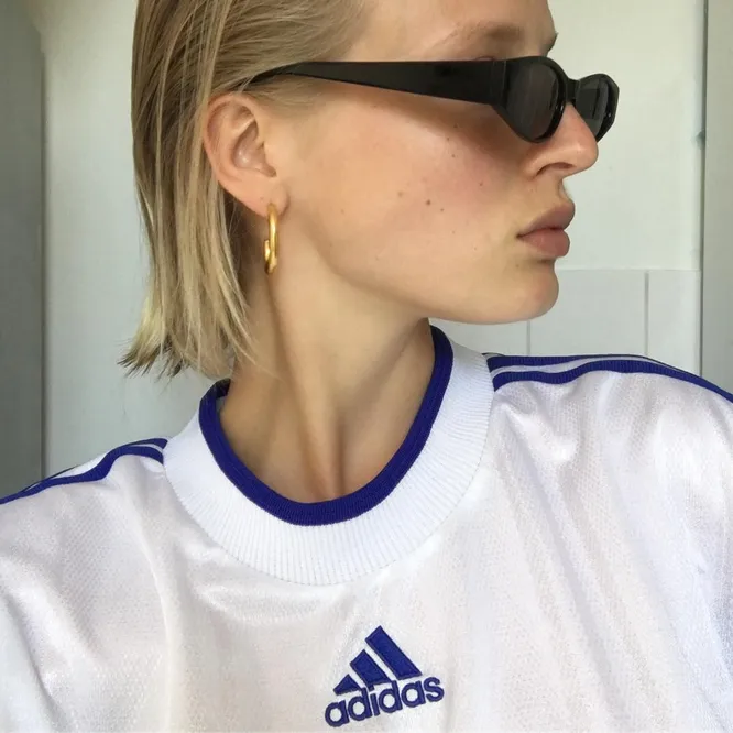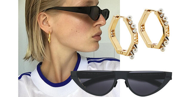 Не знаете, с какой стороны подойти к ультраузким очкам? Вот вам наглядная инструкция от модели Энин ван Вельзен: черные прямоугольные линзы, золотые серьги-кольца и эффект мокрых волос. С такой укладкой девушка ходит не только на пляж, но и на кастинги. Минимализм 90-х и спортивная экипировка – лучший антураж для такого приема. Мы подобрали 6 пар очков и столько же сережек, чтобы вам осталось лишь зачесать волосы назад с помощью геля.
