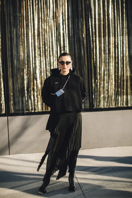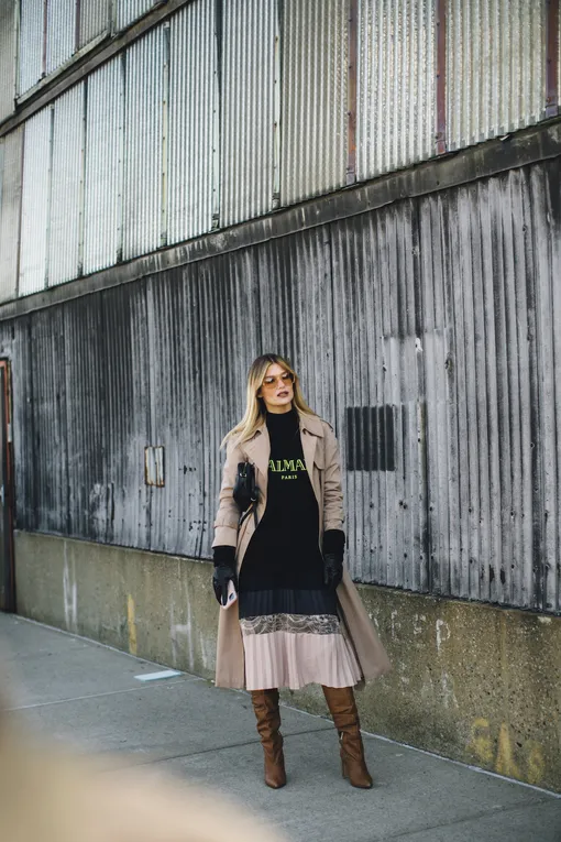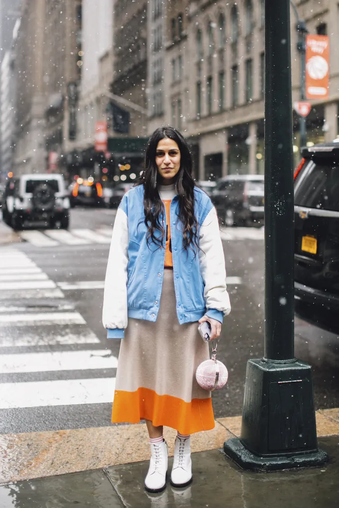 Носить юбки длины макси дизайнеры предлагают с короткими топами и бра, однако в нашем случае эти комбинации скорее подойдут на лето. Поэтому предлагаем искать альтернативные, но не менее стильные способы интегрировать юбки-макси в повседневные луки в образах героинь стритстайла и начать носить их уже сейчас.