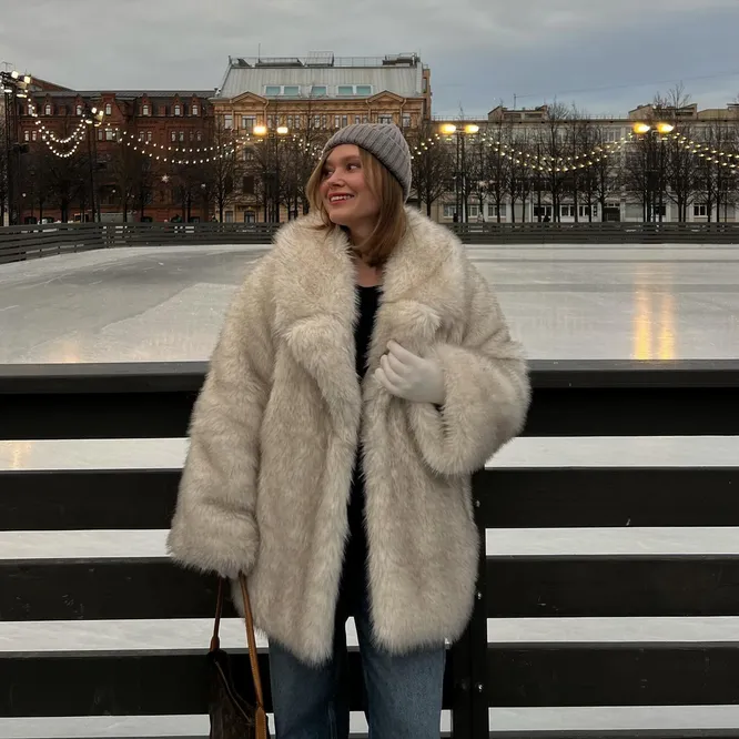 Еще модные образы для катка получатся, если надеть короткую шубу из эко-меха. Главное, выбирайте модель с хорошим составом: иначе вы рискуете замерзнуть. Сочетать ее советуем с удобными трикотажными брюками. Отлично будут смотреться вновь актуальные «клеши» или привычные опции широкого кроя. Следите, чтобы в их составе превалировал процент натуральных материалов. Еще к ним можно подобрать свитер или кардиган в тон — получится стильный и теплый комплект на зиму.