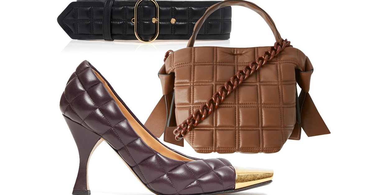 Мода на геометрические принты меняется, а стеганые аксессуары, будь то сумка-конверт, кожаные перчатки или ремешок часов с соответствующей строчкой, остаются. На то она и классика. Выбираем вместительные сумки, напоминающие аппетитные плитки шоколада, носим главные it-shoes сезона от Bottega Veneta и затягиваем потуже пояса, испещренные мягкими «подушечками».
