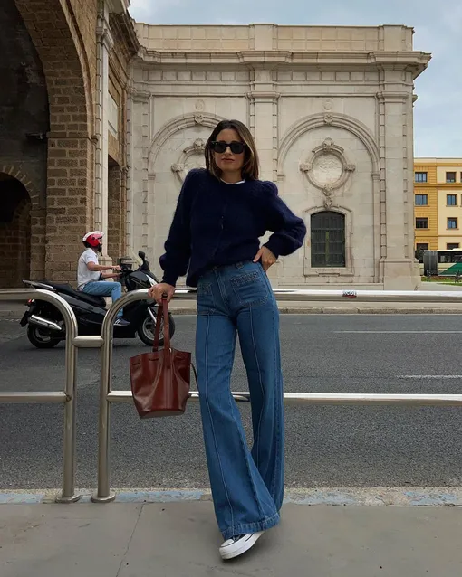 Фигура такой формы выглядит сбалансировано, не выражена разница в объеме бедер и плеч, основной маркер — четко очерченная талия. Для такого типа подходит любая посадка и крой: от высокой до низкой, модели прямого кроя, ультраширокие, а также клеш. Если вы обладательница фигуры «песочные часы», то вам определенно повезло: вам подходит практически любой фасон. Но все-таки лучше быть осторожными с джинсами на низкой талии: есть риск, что такая посадка вытянет верхнюю часть, за счет чего ноги будут выглядеть короче, а фигура тяжелее.