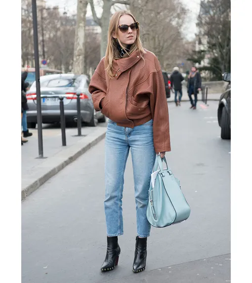 В этом году модель mom официально стала одной из самых покупаемых в мире. Не отстаем от трендов и осенью, но не утяжеляем и без того мешковатый низ грубой обувью — куда больше здесь пригодятся узкие ботильоны на каблуке выше среднего.