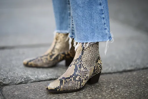 Минималистичные скинни лучше всего будут смотреться с броскими ботильонами. Выбирайте модели с остромодными принтами, например анималистичными.