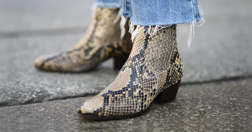 Минималистичные скинни лучше всего будут смотреться с броскими ботильонами. Выбирайте модели с остромодными принтами, например анималистичными.